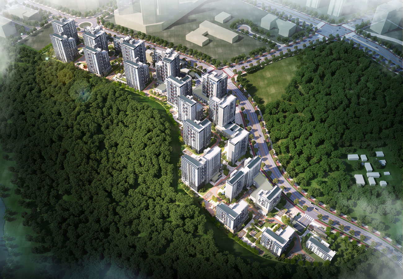 상기 단지조감도는 개발 후의 예상이미지이며, 해당기관의 사업추진과정에서 조정될 수 있습니다.